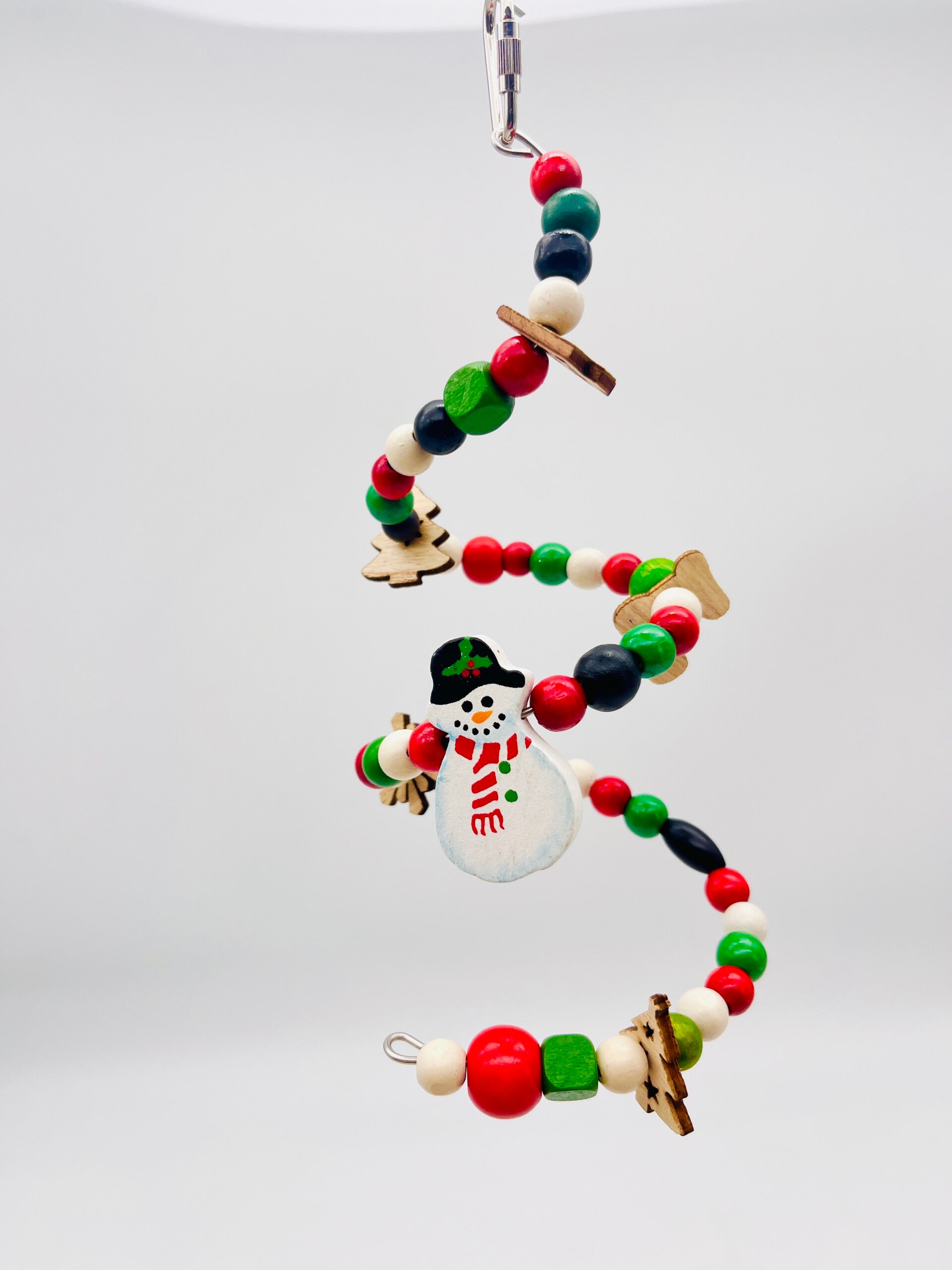 Super leuk is deze kerstslinger, vrolijke kerstige kleuren, boompjes en een gezellige sneeuwpop.