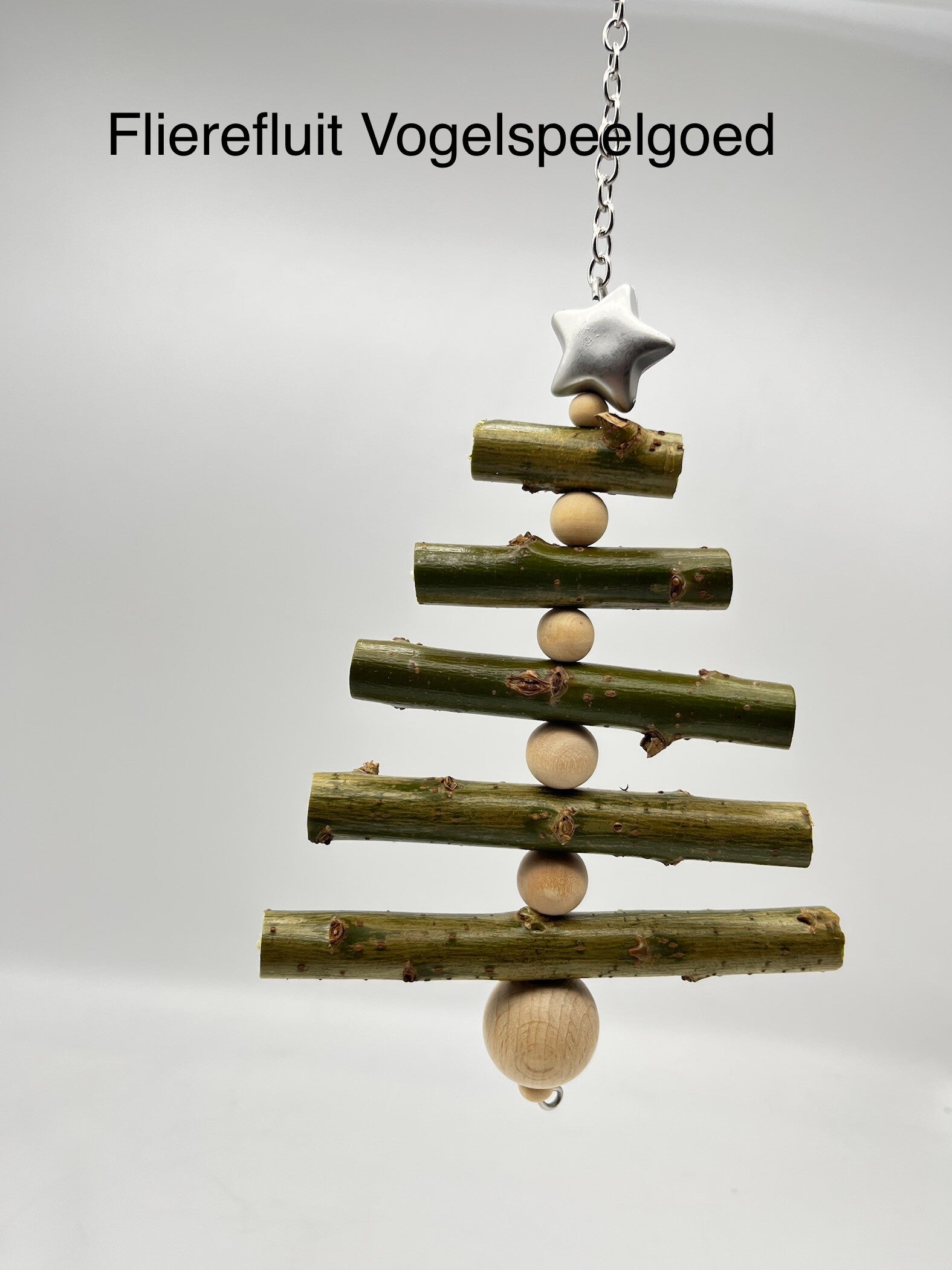 Deze kerstboom van wilgen takken met een schakel ketting en metalen haakje om makkelijk op te hangen.
