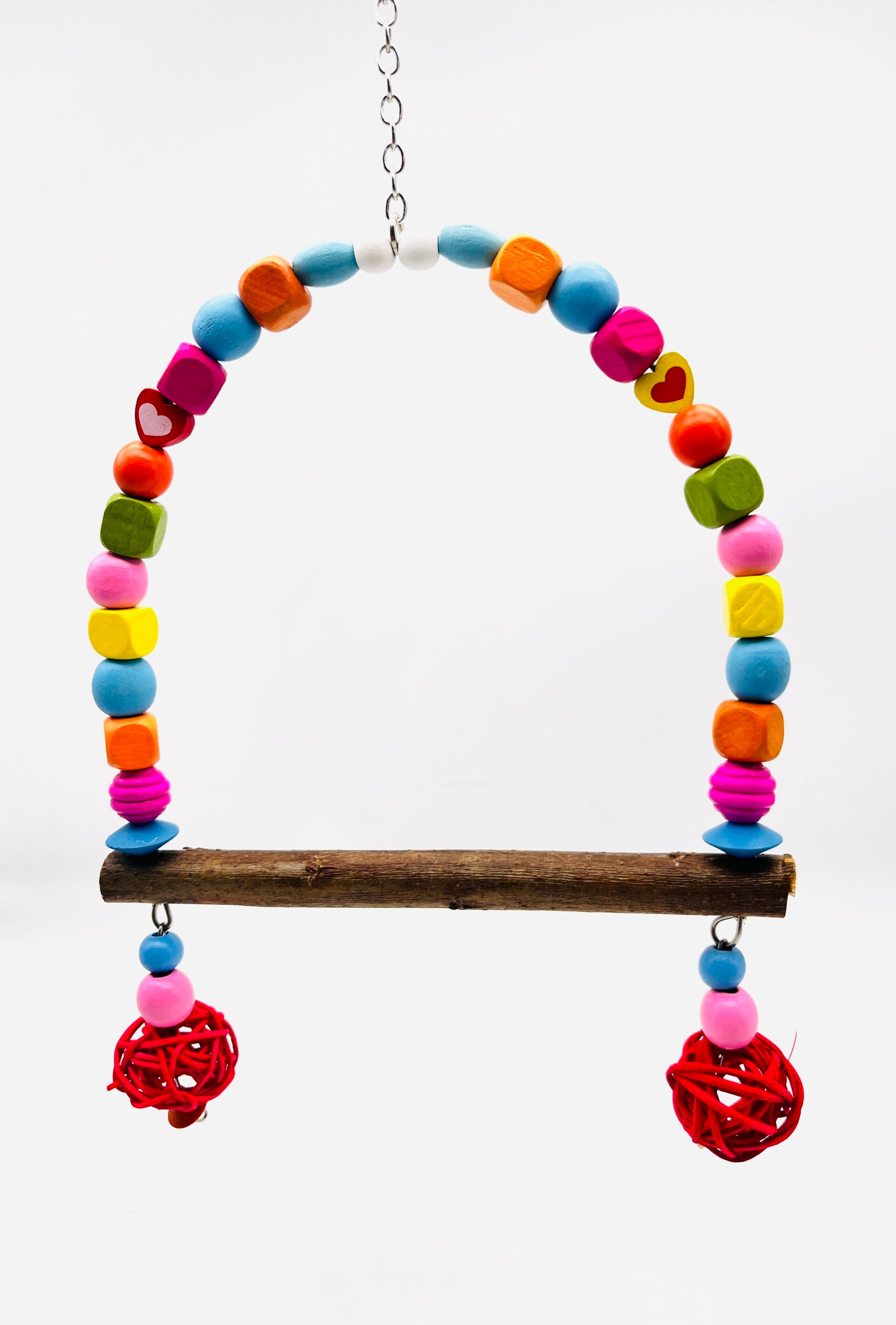 Deze handgemaakte schommel met natuurlijke wilgenstok en rvs draad is breder dan een gewone schommel en meet 17 cm. Genoeg voor minstens twee parkietjes!