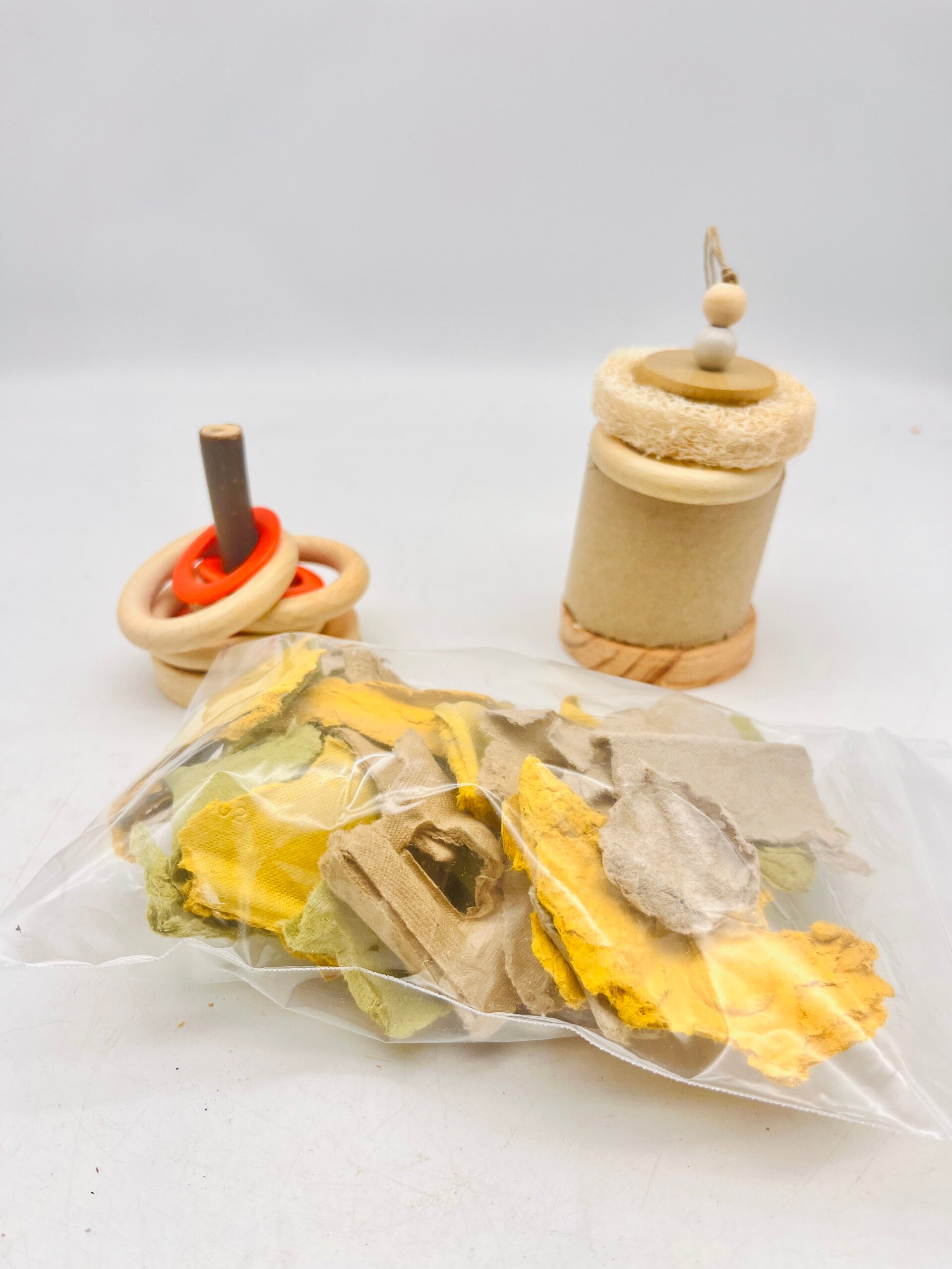 - Handgemaakt foerageerspeelgoed van Flierefluit Vogelspeelgoed